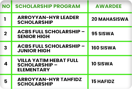 Implementasi pengabdian pada bidang pendidikan dijalankan dengan menghadirkan Program Arroyyan-HYR Character Boarding School, yakni full beasiswa bagi peserta didik berprestasi dengan prioritas dari keluarga kurang mampu secara ekonomi. Arroyyan-HYR Indonesia ingin menghadirkan kesetaraan akses pendidikan kepada mereka yang memiliki semangat belajar dan prestasi tinggi.